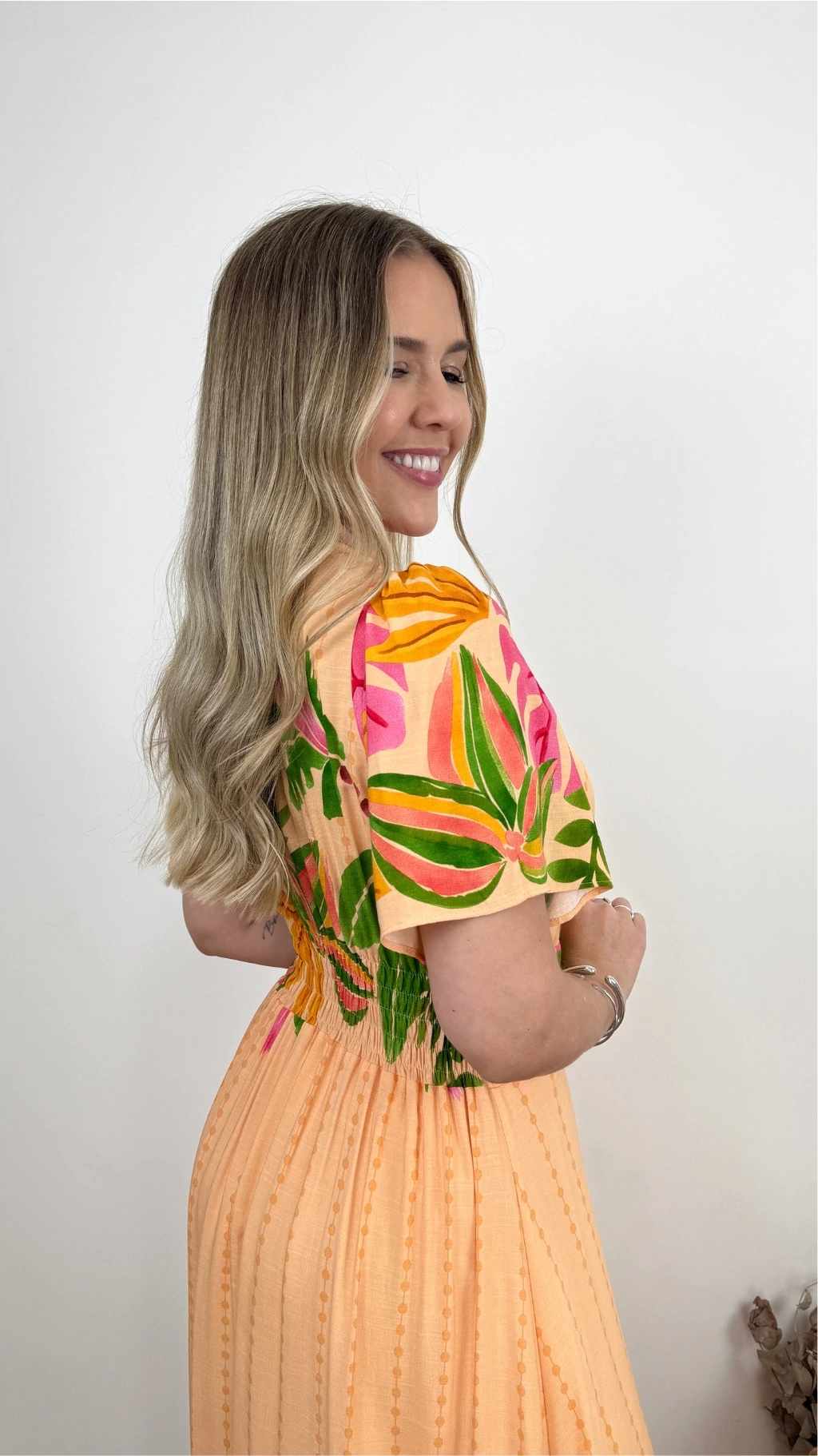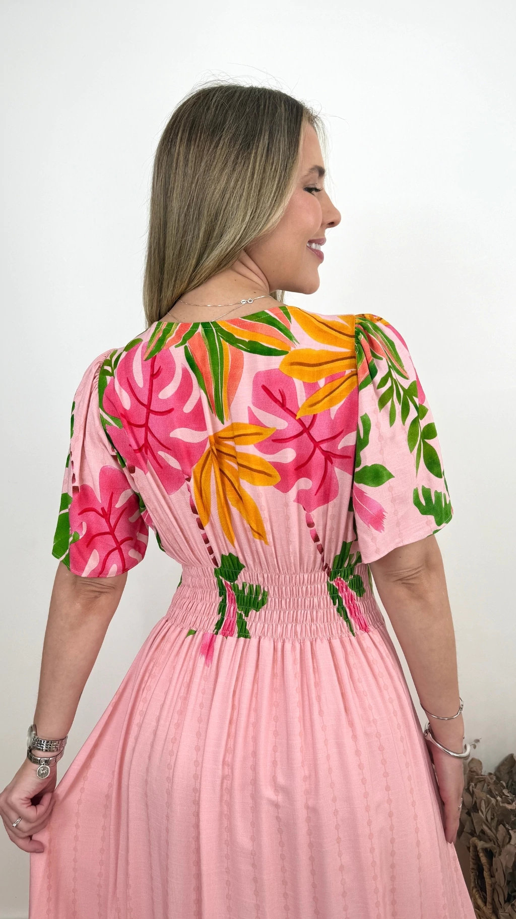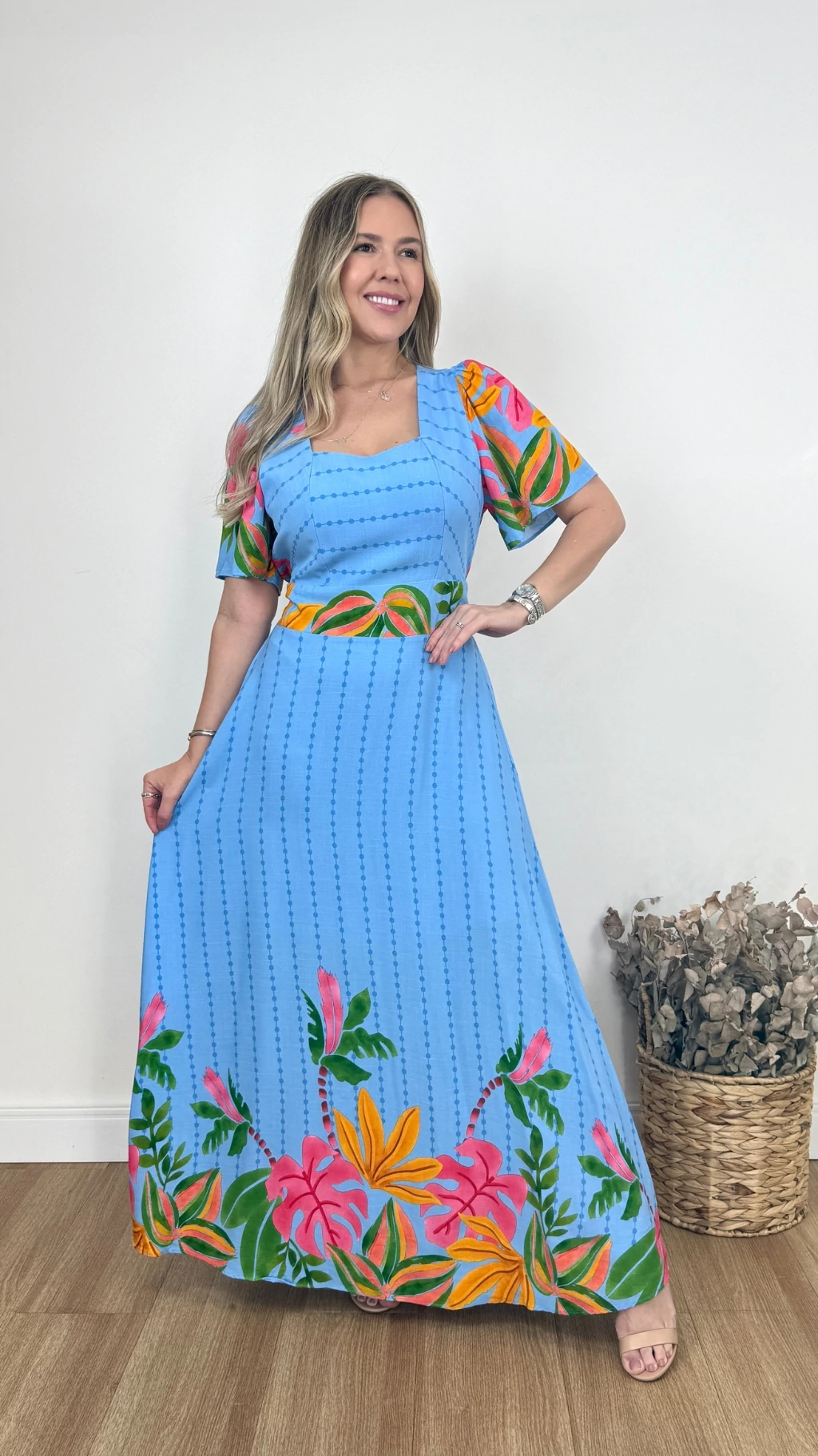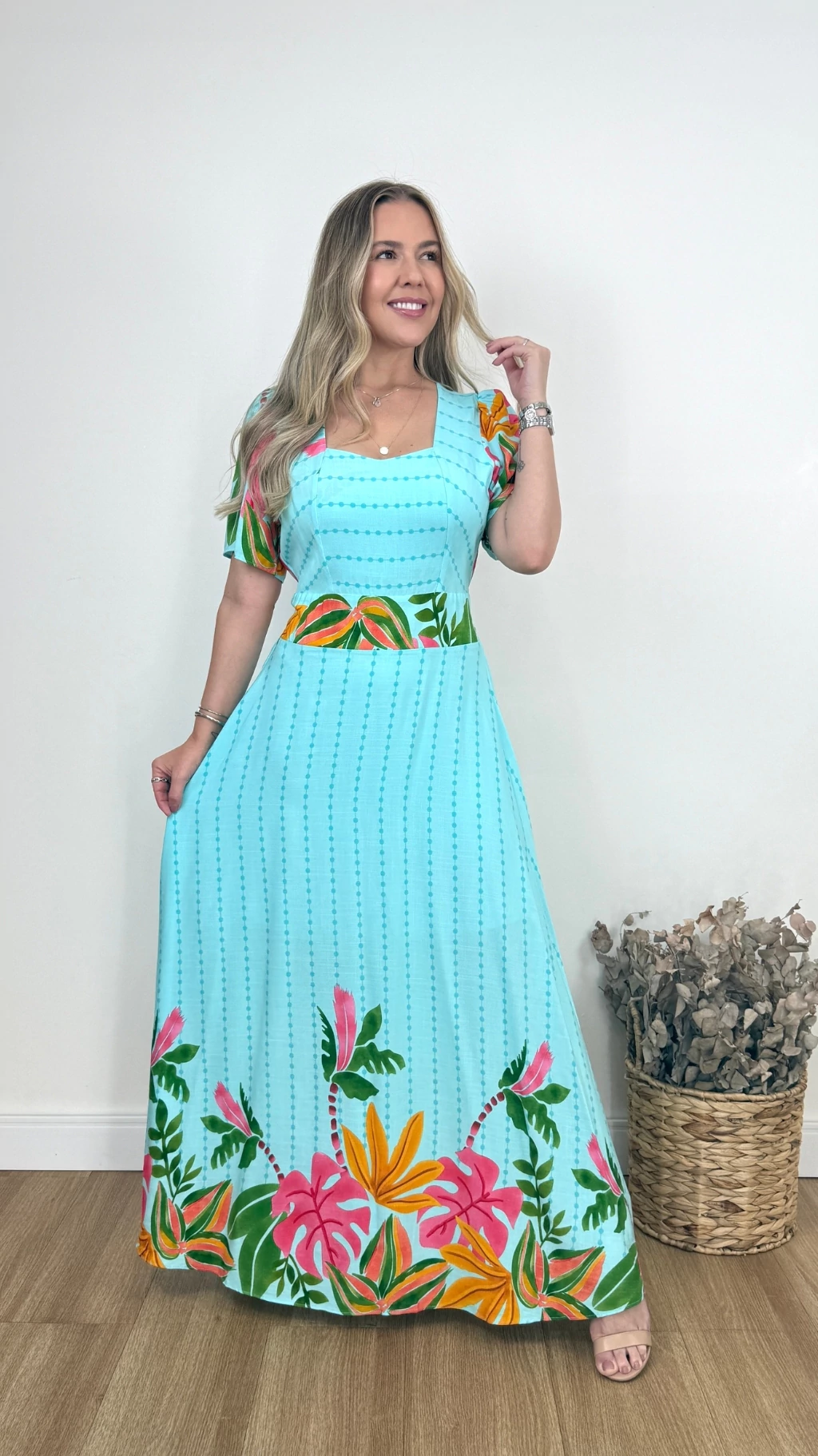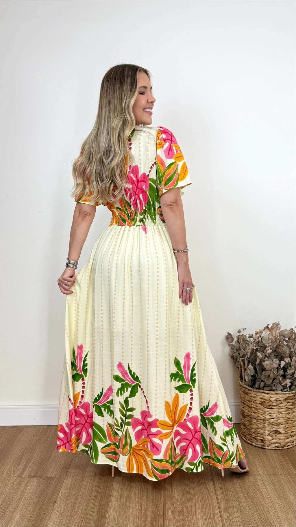 O Vestido Sheron une delicadeza, conforto e elegância. Confeccionado em viscolinho, com forro e mangas godê, valoriza a silhueta e garante movimento e charme.